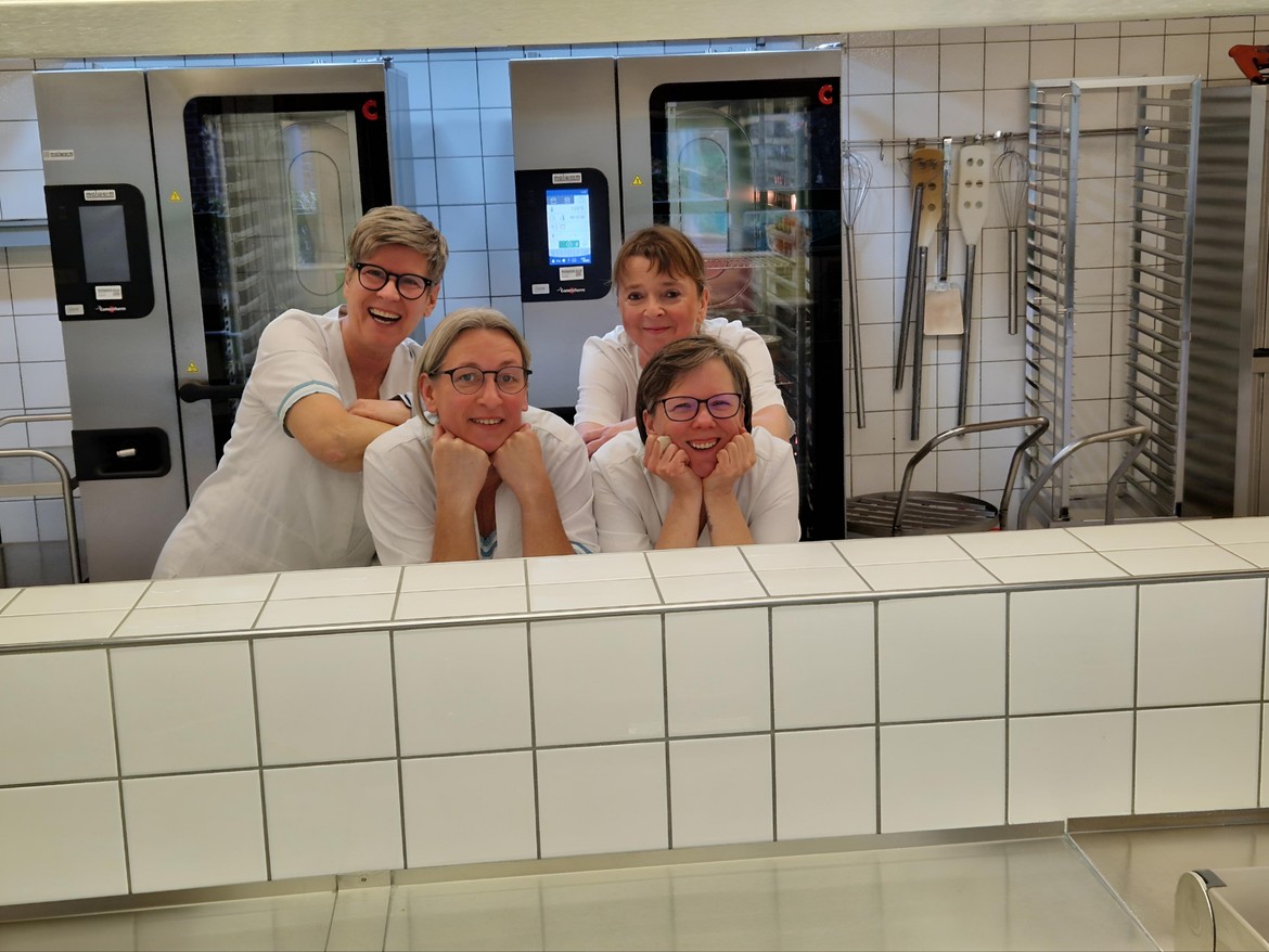 Unser Küchenteam, um die Küchenleiterin Ulrike Stöcker, bereitet von montags bis donnerstags vollwertige und ausgewogene Mahlzeiten zu. In der Woche bieten wir zweimal vegetarische und jeweils einmal ein Fisch- bzw. Fleischgericht an. Unsere Fleischgerichte bestehen aus Geflügel und Rindfleisch. Schweinefleisch wird in unserer Küche nicht verarbeitet. Besonderen Wert legen wir auf die Verwendung frischer, saisonaler und regionaler Produkte. Bei der Herstellung der Speisen achten wir auf die strikte Einhaltung der Hygienestandards auf der Basis eines HACCP-Konzeptes.